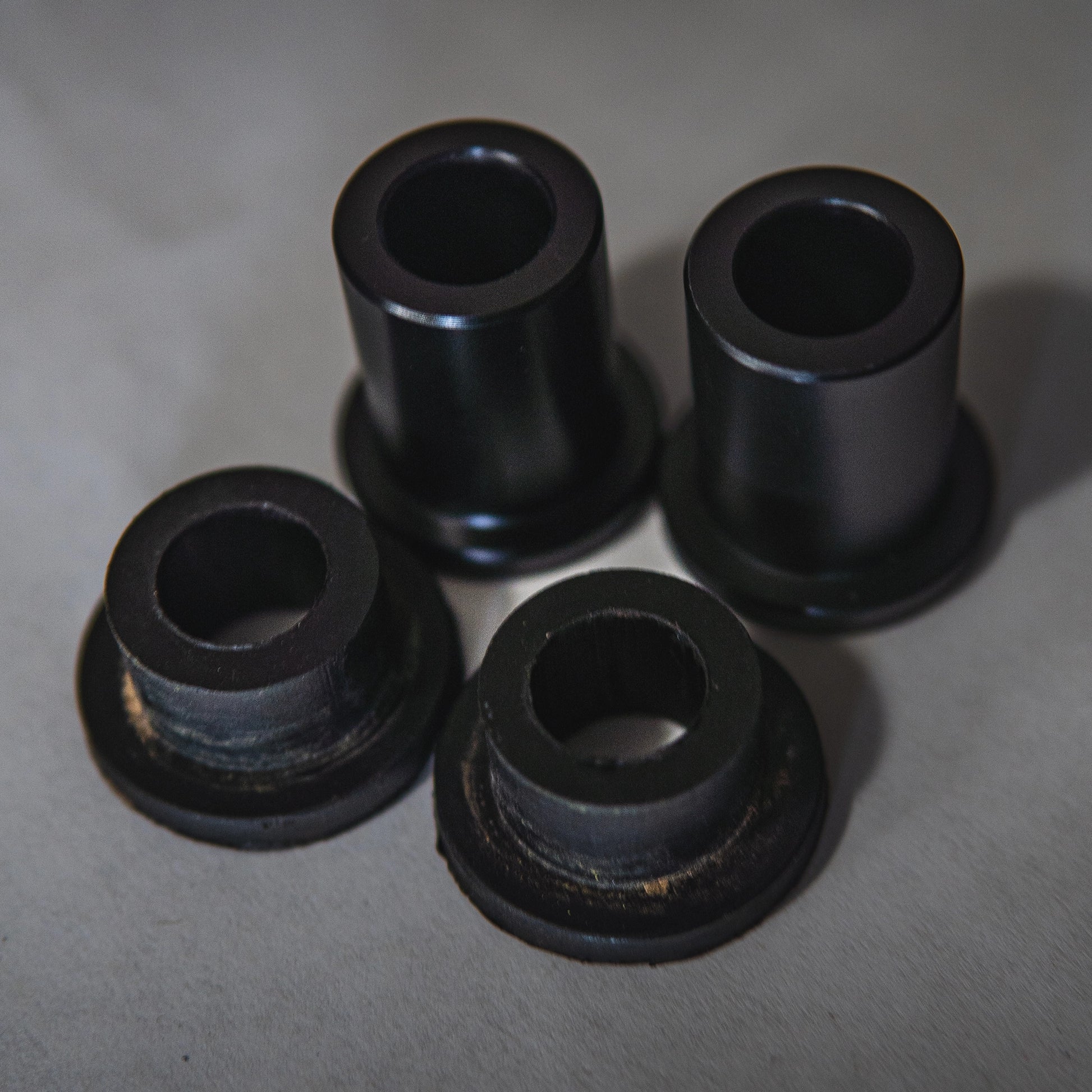 Upgrade your Razor's fragile, loose-fitting plastic bushings with precision-made, self-lubricating Delrin bushings. These are 15mm longer than stock. Delrin offers greater durability and firmness compared to polyurethane, improving suspension and lasting longer than stock bushings.